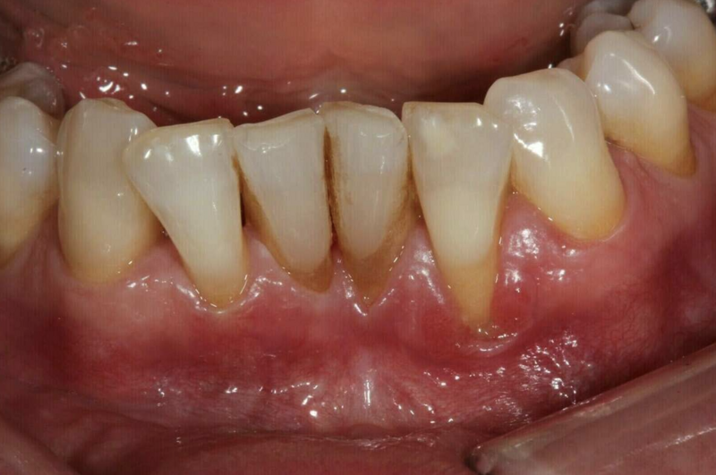 Dans le cas où on est en présence d'une récession gingivale et que celle-ci continue de progresser soit par la maladie parodontale soit par un brossage traumatique ou que le sensibilité thermique est importante et gênante, on peut greffer de la gencive et maintenir un environnement propice à l'hygiène.